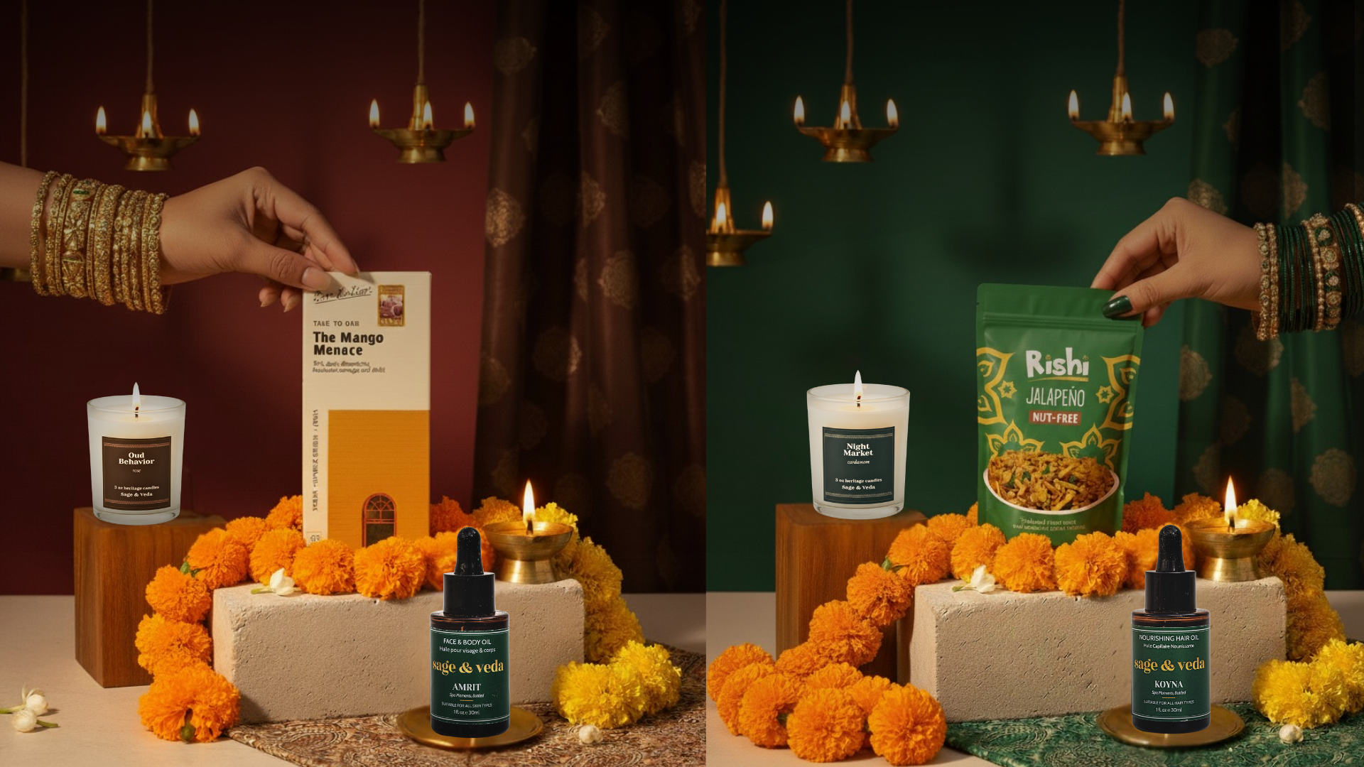 This year, we’ve joined hands with Bon Fiction and Rishi Snacks for a collaboration that celebrates craft, community, and conscious giving. Each Diwali gift box combines Ayurveda-inspired beauty, heritage candles, artisanal chocolate or thoughtful snacks — small gestures of care that connect us.